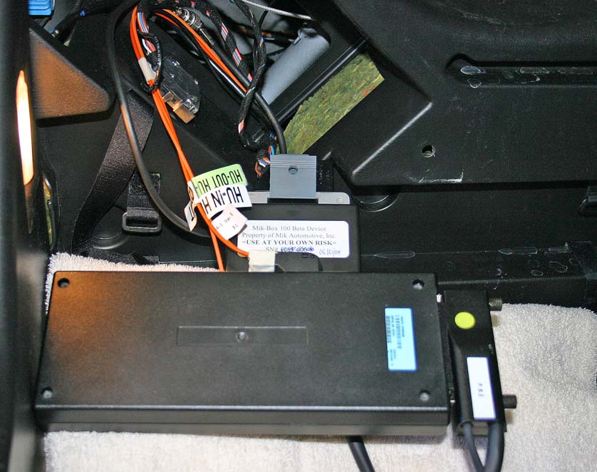 The Mikbox connected between car harness and Y-cable. The Y-cable is plugged into the PSE.